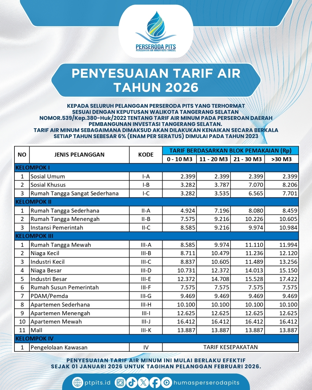 Berikut Tarif yang berlaku di Perseroda PITS